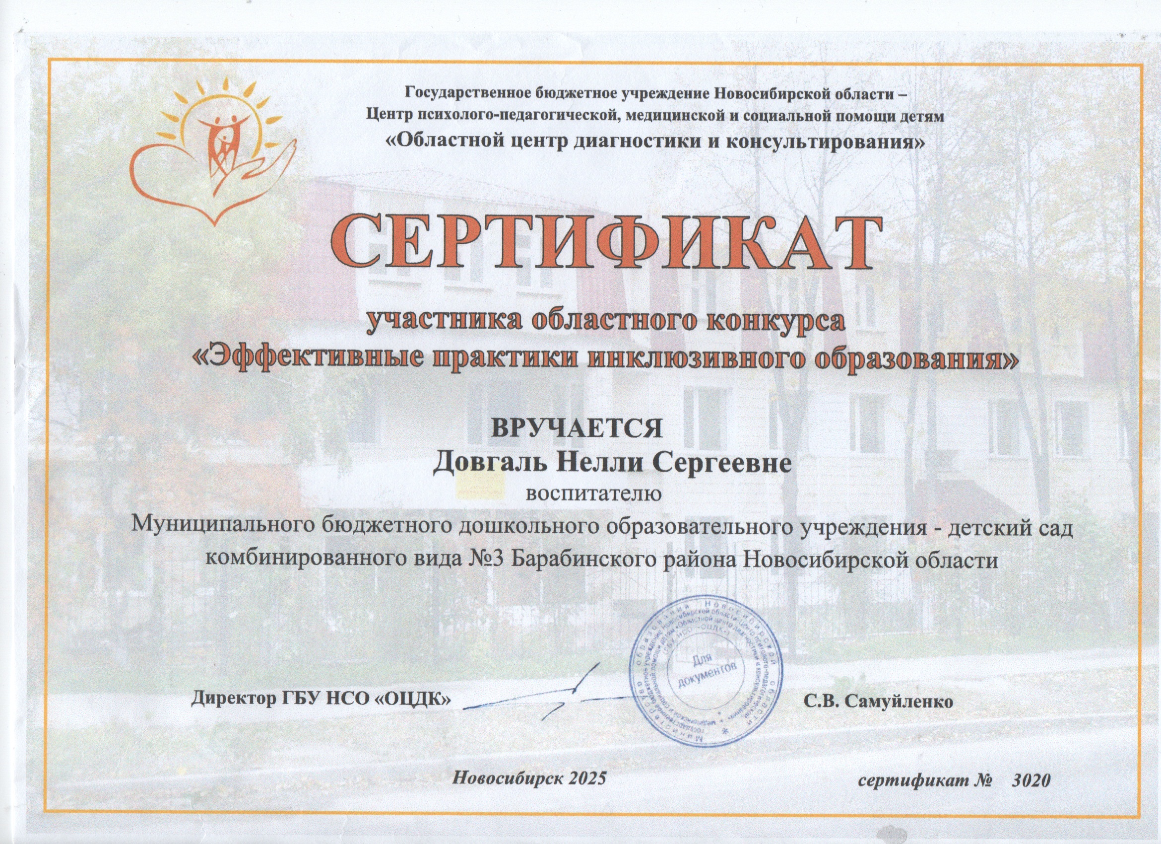 Сертификат участника областного конкурса "Эффективные практики инклюзивного образования" 10.2025г.